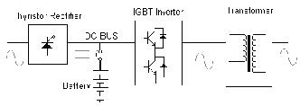 早期大中型UPS主回路結(jié)構(gòu)采用可控硅整流將輸入的交流電整為直流,電池直接掛在直流母線上,當(dāng)輸入市電正常時(shí),靠整流可控硅的調(diào)節(jié)對(duì)電池充電,同時(shí)為GTR或IGBT結(jié)構(gòu)的橋式逆變器供電,逆變器將直流逆變?yōu)榻涣鳎詈蠼?jīng)過輸出變壓器的升壓及濾波,提供純正的交流輸出。從其結(jié)構(gòu)中可以看出,從整流(從交流變?yōu)橹绷鳎┑侥孀儯ㄔ趶闹绷髯優(yōu)榻涣鳎┑倪^程中,每個(gè)環(huán)節(jié)都是將壓環(huán)節(jié):可控硅整流是為了提供恒定的直流電壓而采取的一種整流方式(可通過可控整流的導(dǎo)通角調(diào)整來適應(yīng)輸入電壓變化,確保輸入交流電壓變化時(shí)整流輸出直流電壓的恒定),由于可控硅整流只能斬掉一部分輸入電,所以其恒定輸出電壓的代價(jià)是將輸出電壓恒定在底于全波整流輸出電壓的某個(gè)數(shù)值上。而逆變環(huán)節(jié)同樣是一個(gè)降壓環(huán)節(jié),從可控整流輸入來的直流電在通過逆變器逆變出交流的過程中同樣采用的是斬波的做法,其結(jié)果同樣是輸出電壓等級(jí)的再次降低。正是由于上述的原因,在此種結(jié)構(gòu)的UPS中,必須在輸出測加入升壓變壓器,將逆變輸出的較低恒定電壓升致合理的輸出范圍,最終提供了恒定的220/380V輸出。